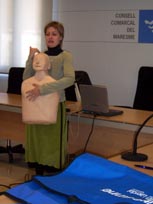 La sessió formativa que s’ha realitzat avui ha tingut 3 parts diferenciades: Representants dels Mossos d’Esquadra han explicat a les assistents la normativa vigent en matèria de transport escolar i de menors; Representants de la Fundació El Maresme han assessorat a les monitores sobre diverses eïnes psicopedagògiques per a l’atenció de persones amb minusvalidesa o deficiència; i, finalment, una representant de Creu Roja ha donat formació en primers auxilis.