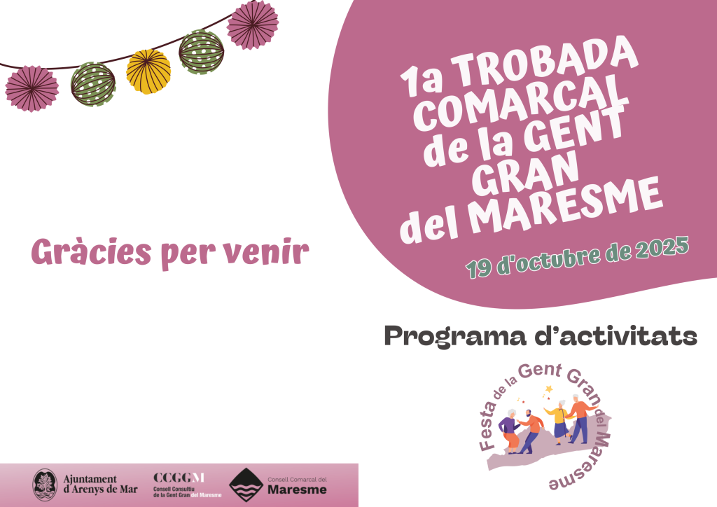 Arenys de Mar acollirà el proper 19 d’octubre la I Trobada Comarcal de la Gent Garan del Maresme, una iniciativa del Consell Consultiu de la Gent Gran del Maresme, el Consell Comarcal i l’Ajuntament d’Arenys de Mar per reconèixer i posar en valor el paper actiu de la gent gran i promoure espais de trobada dels 30 municipis de la comarca.
