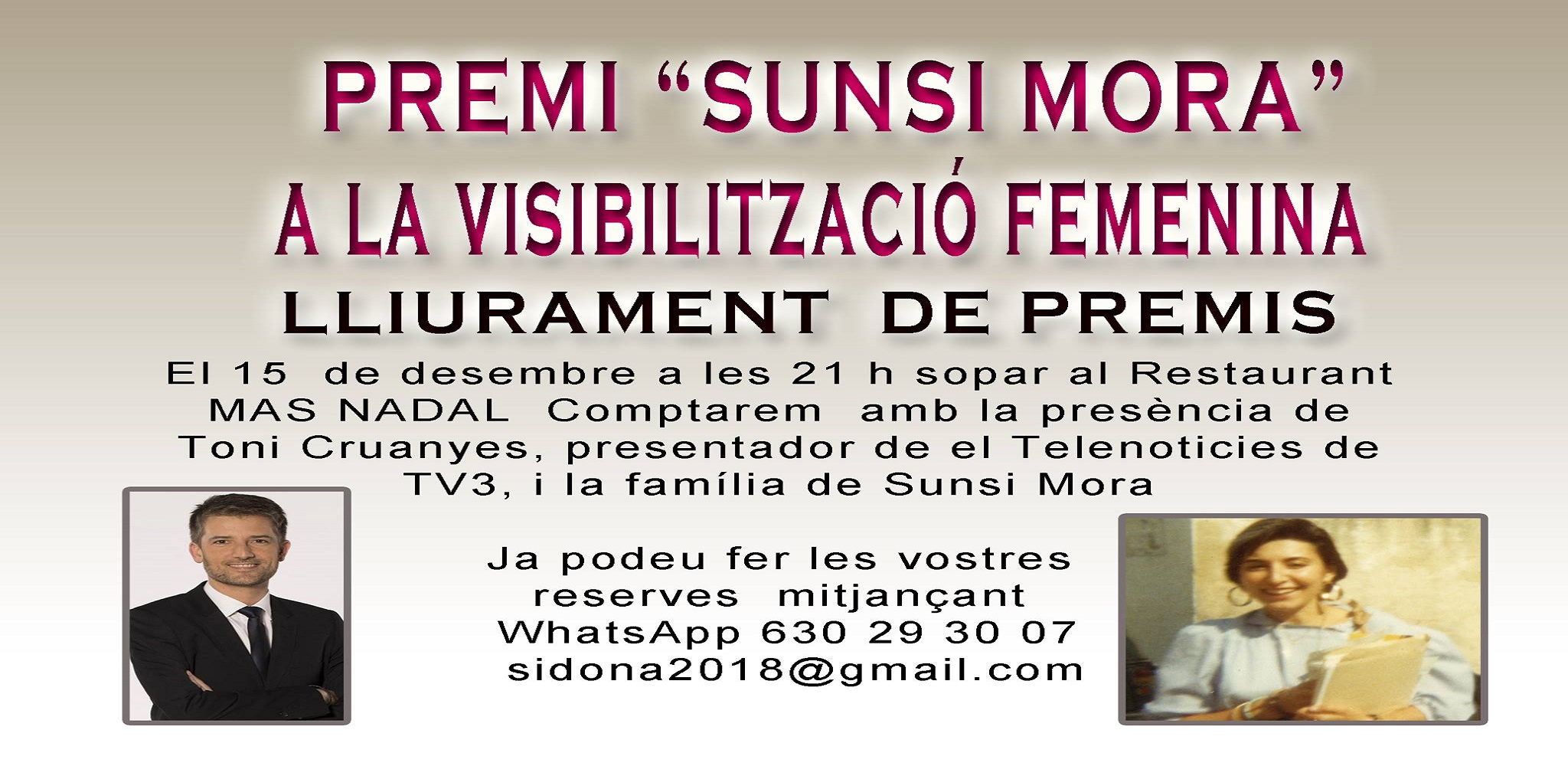 L’associació Si Dona de Sant Andreu de Llavaneres organitza l’acció “Premi Sunsi Mora a la visibilització femenina” amb el suport del Consell Comarcal del Maresme i de l’Ajuntament de Llavaneres. Aquest acte pretén reconèixer les aportacions de les dones del municipi de Llavaneres als diferents àmbits.